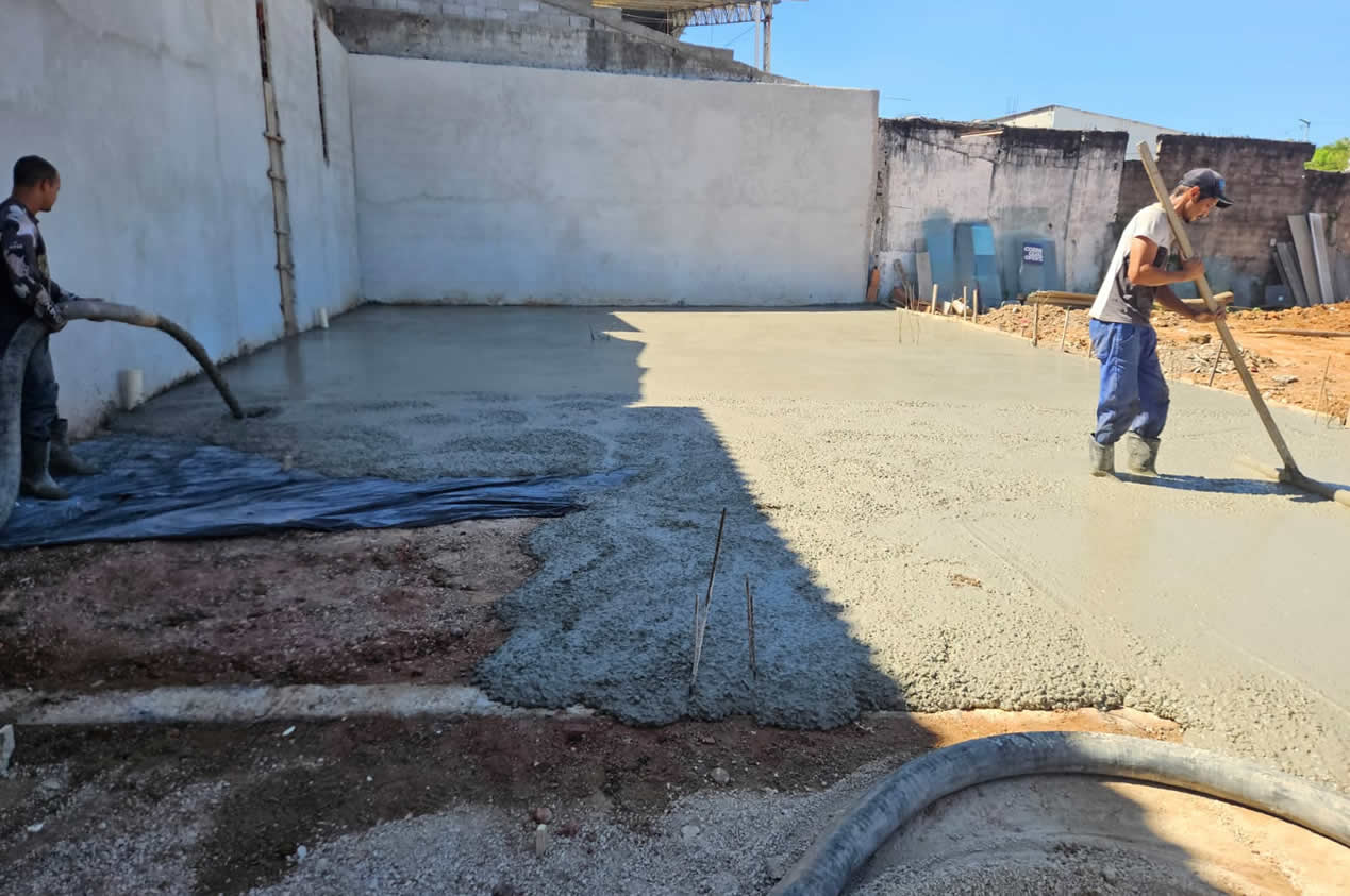 Aplicado com uma bomba e mangotes que impulsionam o material do caminhão betoneira até o local da obra.